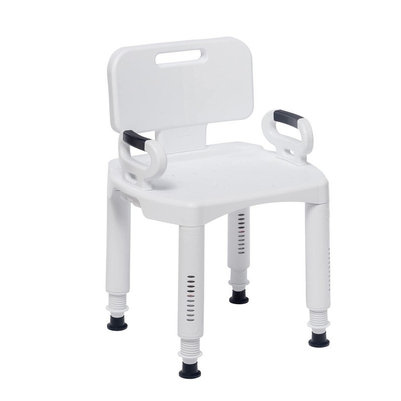 Drive Medical Bathroom Bench with Back & Arms - Adjustable Height - Suction Tip Legs for Stability - Durable Plastic Seat - 350 Lb Capacity - White