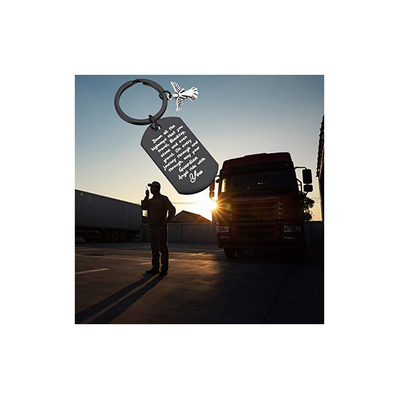 - ❤New Drive Keychain Gifts❤A stainless steel Engraved: Down all the highways that you travel,Blacktop,stone and even gravel.On every journey through and through,may your Guardian angel ride with you.