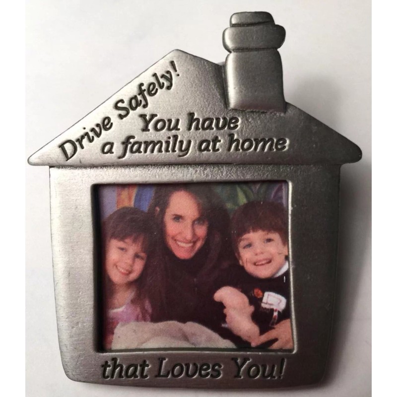 Drive Safely Family Picture Frame Auto Visor Clip Solid Pewter 2 x 2.4 Inches