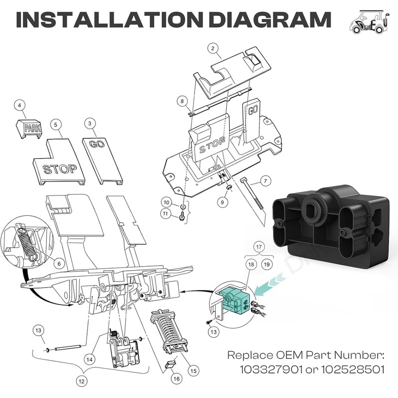 - Club Car Precedent MCOR Accelerator Replaces: OEM# 1033279-01 or 102528501.