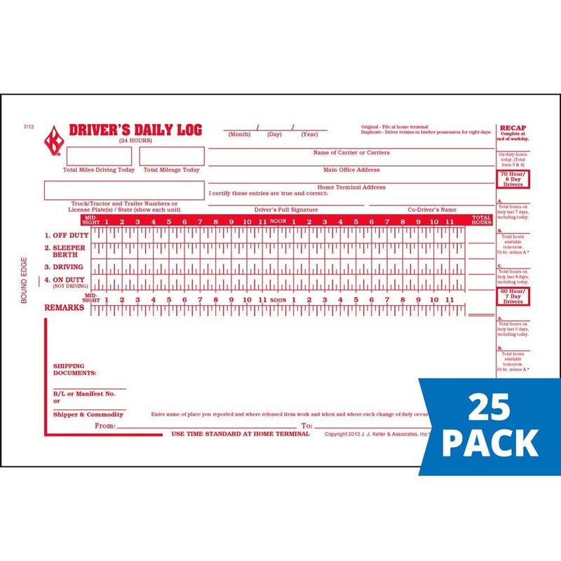 Driver Daily Log Book 25-pk. with Simplified Driver Vehicle Inspection Report & Daily Recap - Book Format, 2-Ply with Carbon, 8.5" x 5.5", 31 Sets of Forms Per Book - J. J. Keller & Associates