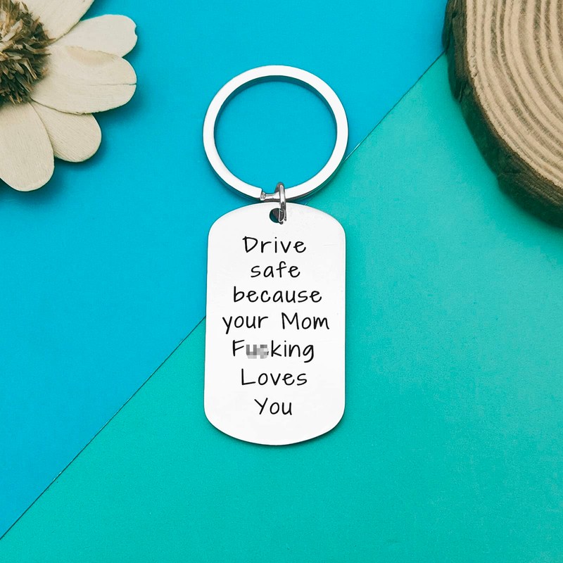 - Funny Birthday Gift for Daughter Son - "Drive safe because your Mom loves you"funny Keyring.Humored gift for him and her, and they will knows that you are saying “mom loves you, please take care yourself whatever you are doing ”.