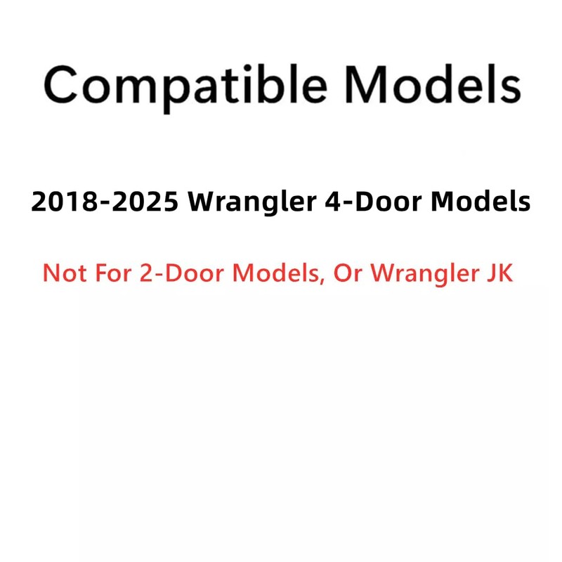 - Compatible Vehicles: 2018-2025 Wrangler 4 Door Utility, (not for Wrangler JK Models)