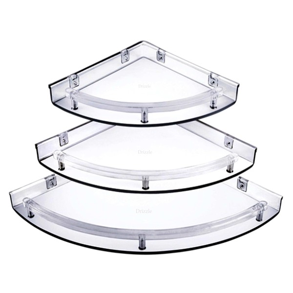 Drizzle Bathroom Corner Shelf Super Clear, Corner Shelves Unbreakable - One Set (3 Pieces)