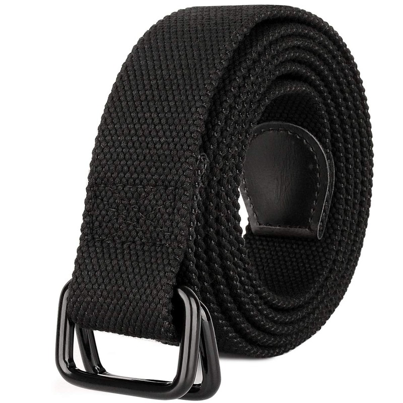 Drizzte 55'' Plus Size Long Double Ring Big Mens Canvas Fabric Cloth Belts Black