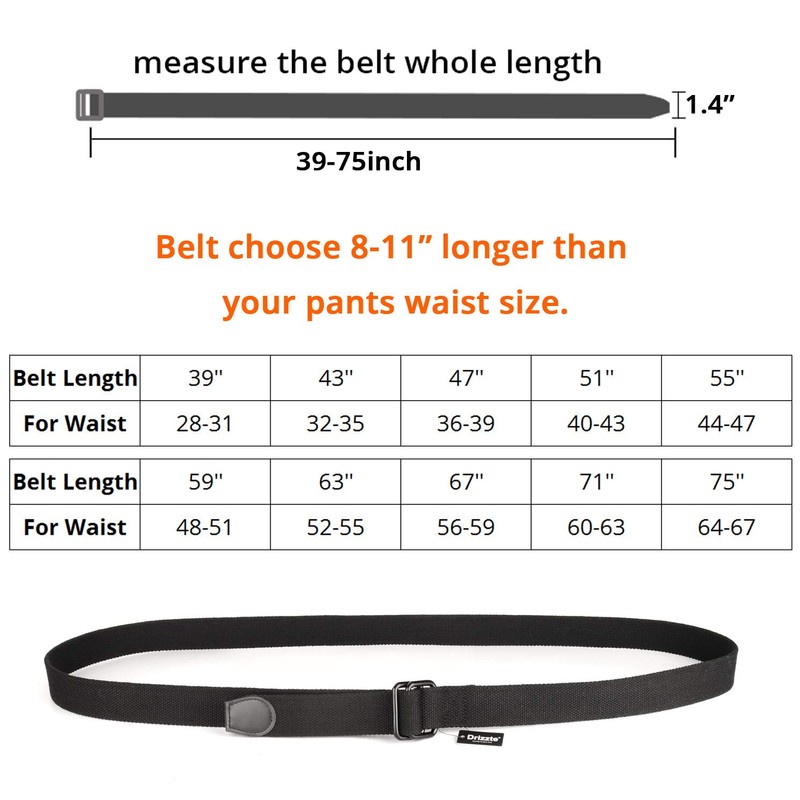 - Measure the full length of your older belt to choose the size fit you. Size reference: [39'': waist 27-30] [43'': waist 31-35] [47'': waist 36-39] [51'': waist 40-43] [55'': waist 44-47] [59'': waist 48-51] [63'': waist 52-55] [67'': waist 56-59''] [71'': waist 60-63''] [75'': waist 64-67] fit for big and tall man.