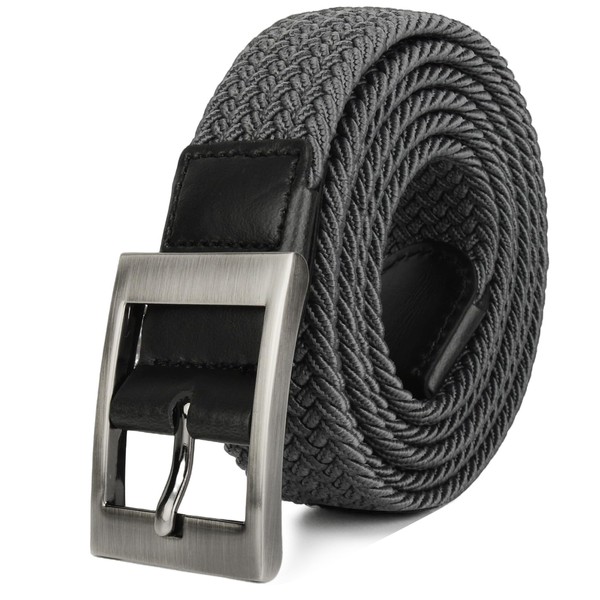 Drizzte Mens Plus Size Belts 39'' to 75'' Casual Black Braided Elastic Stretch Fabric Woven Web Belt Work Golf Jeans, Grey, 47'' (waist 39-42)