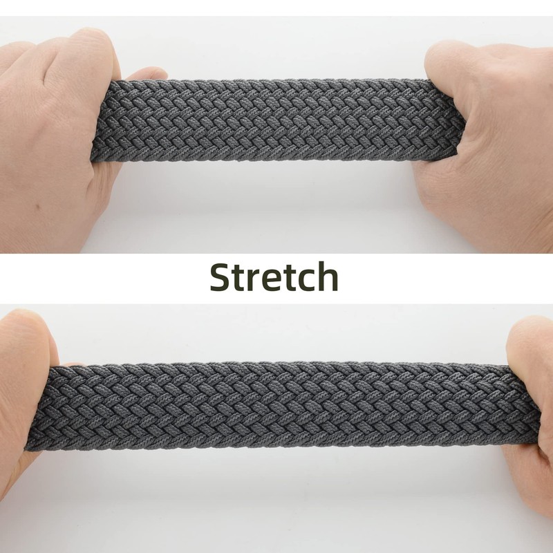 - The elasticity of the braided belt ensures a comfortable fit that moves with your body and doesn't constrict or dig into your skin.