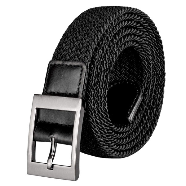 Drizzte Mens Plus Size Belts 59'' Casual Braided Elastic Stretch Fabric Woven Web Belt Work Golf Jeans Black