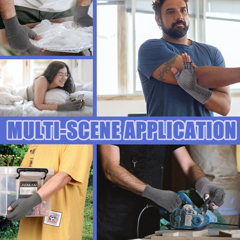 - [Arthritis compression gloves interfere with work? ] -Don't! A team of professionals used a fingerless + non-slip design. At the same time, the length of the arthritis gloves was set to the optimal length to provide the perfect balance between beneficial compression support and finger/thumb mobility, ultimately freeing up the fingers to uninterruptedly perform phone calls, typing, cooking, exercising, cleaning, sewing, etc. without interruption!