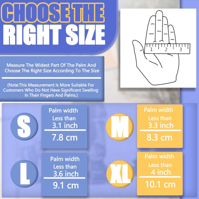 - [How to choose arthritis compression gloves size? ] -Choose your size according to the size of your hand. Refer to the size chart. Small hands are usually recommended to wear S-size compression gloves, men and women typically choose M-size, and people with large or swollen hands are advised to wear L-size compression gloves. Every pair of fingerless arthritis compression gloves is an excellent choice for people with arthritis, osteoarthritis, rheumatism, and carpal tunnel syndrome.