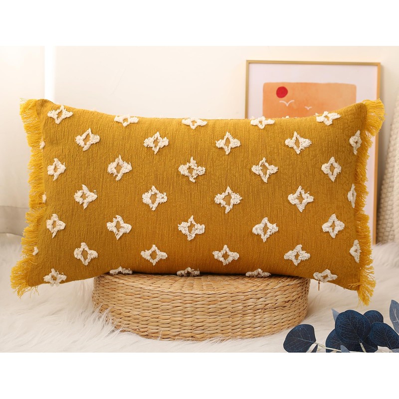 - Chic Design: The 3D flowers gives you a natural feeling,and 1" handmade tassels on both sides look so cute.This neutral extra long lumbar pillowcase also goes well with bohemian farmhouse, mid century, retro and chic style decor