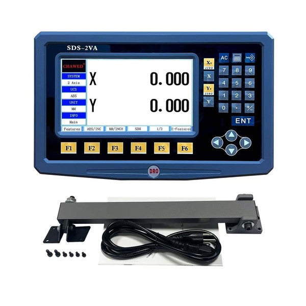 - High Quality- The 2 Axis DRO digital readout display meter system is equipped with a variety of intelligent functions:MM/INCH, SDM 200 sets memory, bevel processing, power-off memory, circumference drilling, oblique line drilling, 1/2 centering,Axis sunmming functuon etc. Extra RPM function,Also a calculator is equipped for more convenient usage.