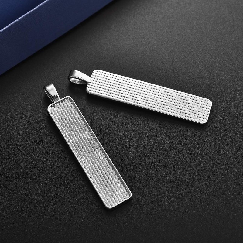 DROLE Small Rectangle Pendant Trays with Rectangle Cabochons for Jewelry Making -Color: White K ( brighter than silver color) -Package include: 30 pieces rectangle trays 30 pieces rectangle cabs The cabs and trays can fit perfectly.