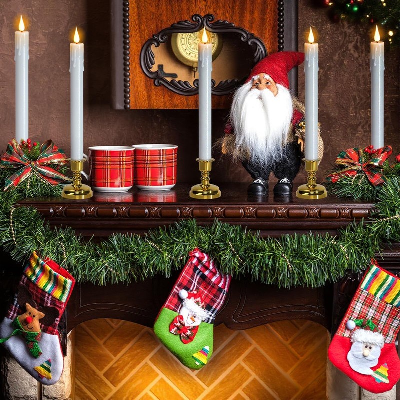 - [Window Taper Candles with Remote and Timer]: 🎄Our flameless taper candle set comes with a 10-key functional remote. ON-OFF-Brightness-Flickering-Timer, you can operate these battery candles from 20 feet distance with one press. 2/4/6/8 hours timer meet your different using need. Once the timer is set, cycle every 24 hours
