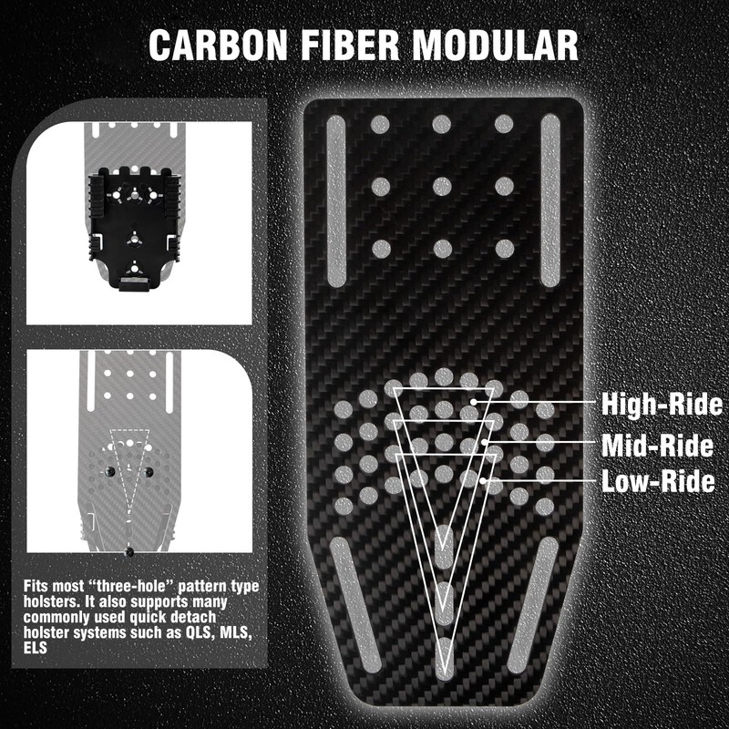 - 【CARBON FIBER MODULAR】The Modular Attachment is a (0.070") CARBON FIBER mounting plate for holsters Etc systems to attach to a MOLLE and BELT. The Modular Attachment is best suited for compatibility with Safari and Alien mounting patterns but can also mount holsters such as Dara Holsters and hawk holsters.