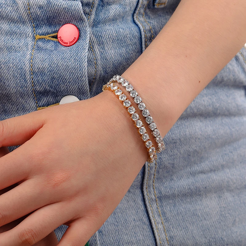 Drop Shipping USA Stock 5mm White Gold Plated Women's 925 Sterling Silver VVS Moissanite Cluster Tennis BraceletColor: White Gold, Length: 9inches