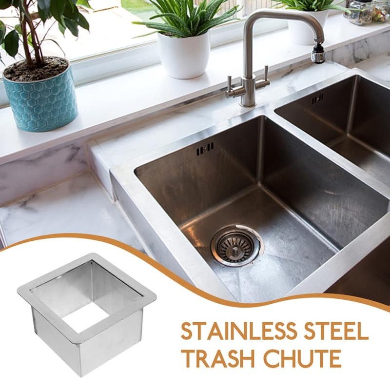 Drop Trash Chute Grommet Square Stainless Steel Countertop Waste Chute for -Saving Design Easy to Clean Suitable for Various Countertops