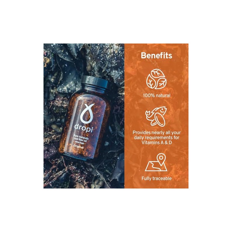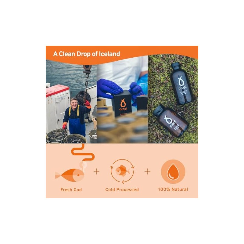 • Icelandic Healthy Living: Dropi's Icelandic roots, characterized by healthy living, longevity, and sustainability, were formed in one of Iceland's oldest fishing communities. We have built them into every aspect of our brand to provide 100% natural, extra virgin fish oil in its cleanest and rawest form.