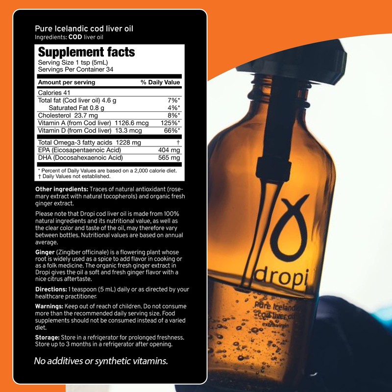 • Natural: Dropi Cod Liver Oil is made in a small Icelandic fishing village, exclusively from fresh cod. 100% natural cod liver oil of the highest quality from one of the cleanest oceans in the world.