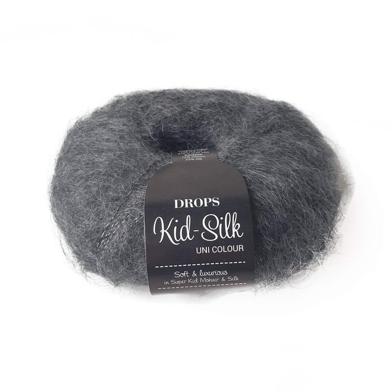 - DROPS Kid Silk - a luxurious, light brushed blend of 75% mohair & 25% silk. Feather light and perfect for shawls or adding texture when held with other yarns.