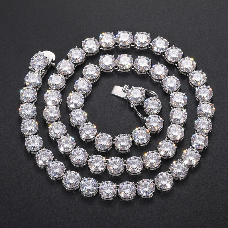 Dropshipping Fashion 2mm 3mm 4mm 10mm 925 Sterling Silver VVS Moissanite Diamond Sparkling Classic Tennis Chain NecklaceColor: 4mm-Silver, Length: 7inches