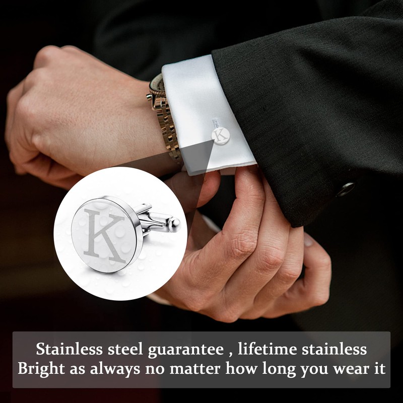- 【DESIGN】--Cufflink Shape: Round. The Size of Mens Tie Clip is 5cm,and The Stainless Steel Money Clip is 5cm.Mens Cufflinks Closure Type: Bullet Back Closure for Easy Wear. Letter: A-Z. Color: Silver/Black. Style: Elegant and Classic. Stand Out But Not Gaudy.Convenient To Wear,Add Nice Bling To The Shirt, Shiny Yet Subtale.