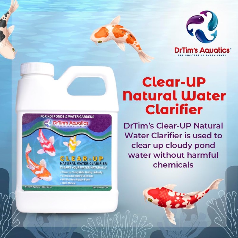 - Clear-UP for koi ponds helps clear up cloudy pond water without harmful chemicals