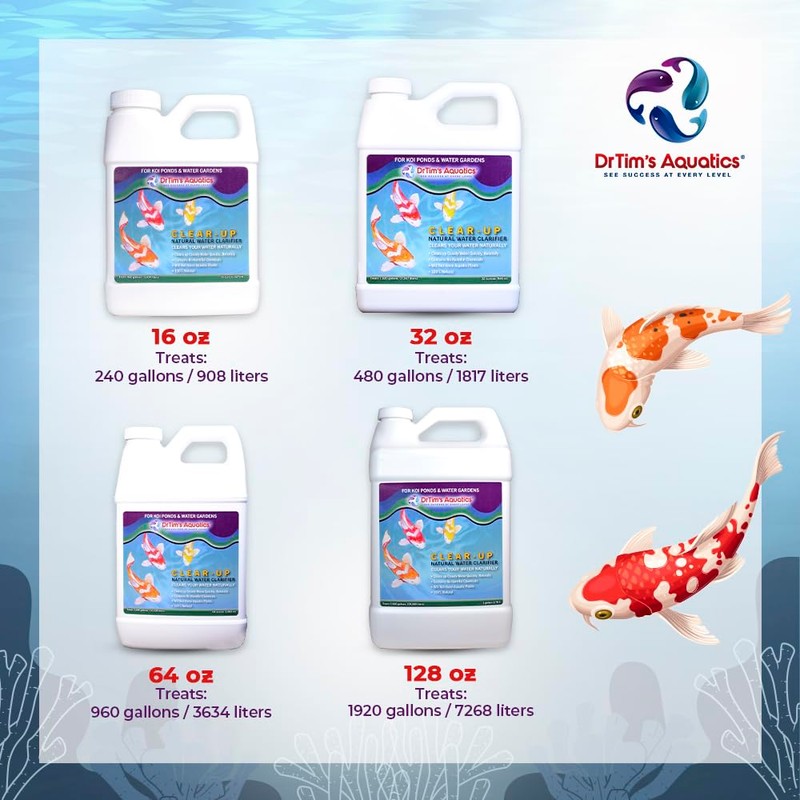DrTim’s Aquatics Clear-UP for Koi Ponds and Water Gardens – 100% Natural Water Clarifier for Sanitizing & Clearing Up Cloudy Water - Treats 7680gal - 128oz