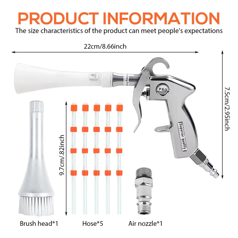 Druckluft Reinigungspistole entfernt effektiv alle Arten von Staub und Schmutz und eignet sich daher ideal für die Reinigung des Autoinnenraums.