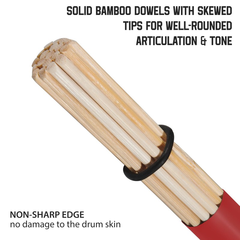 - UNIQUE AND FUNCTIONAL WRAP:Wood dowels are held together by a unique red plastic wrap near the neck of the drumsticks that provides a light sound with just enough texture. The wrap also improves the durability of the sticks.