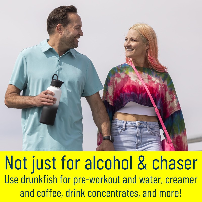 - CONVENIENCE ON THE GO: Drunk Fish makes enjoying a drink on the go easier and less awkward. This lid is designed to fit into most wide-mouth bottles, turning your water bottle into a flask for sipping whenever or wherever. The stylish design of the bottle is inconspicuous while being sturdy, useful, and with superior insulation to keep your chaser nice and cold.