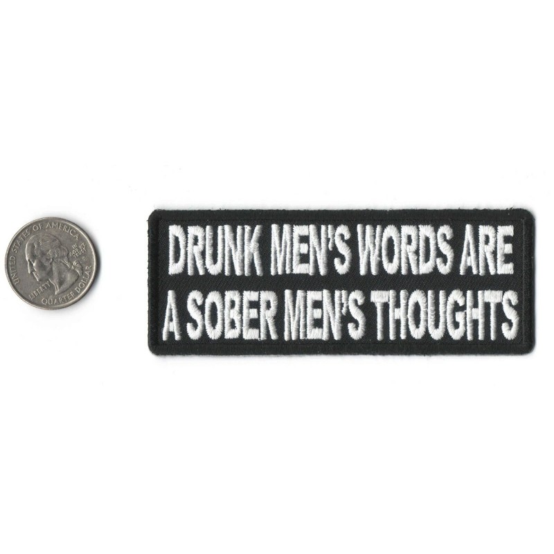 Drunk Men's Words Are A Sober Men's Thoughts Iron on Sew On Patch 4"X 1.5"