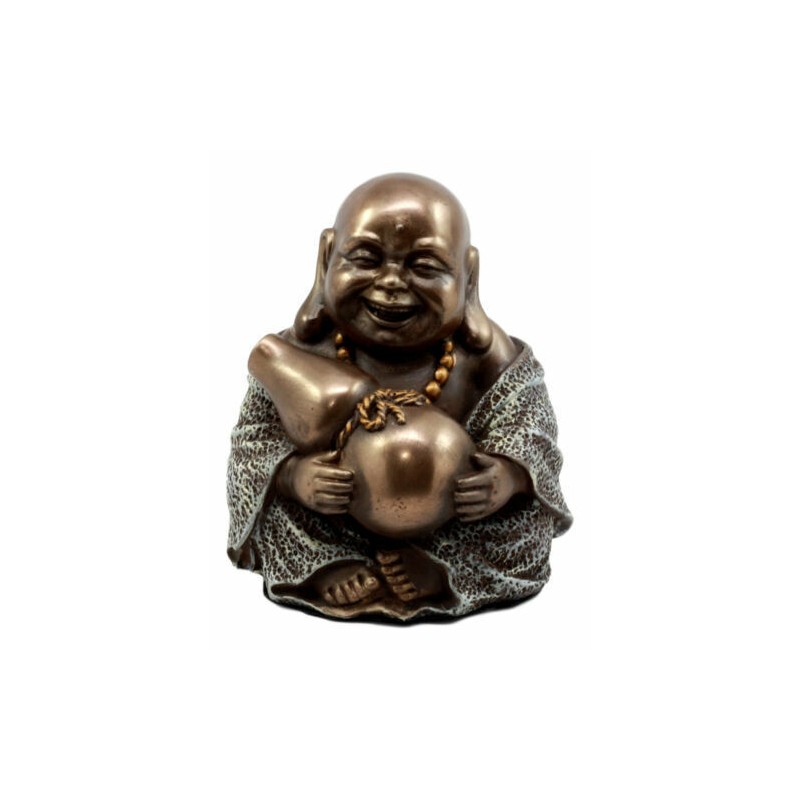 • This Hotei wears a sackcloth and he carries a wine gourd. He is a great amulet for your desktop or car dashboard.