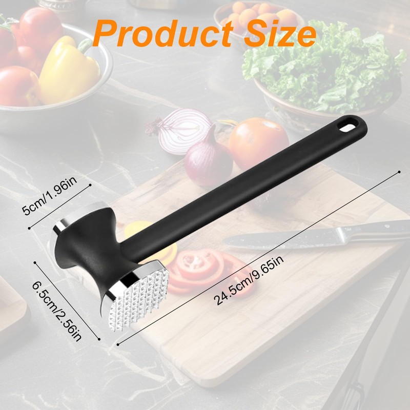 Leicht zu reinigen, geben Sie den Steakhammer einfach in die Spülmaschine oder spülen Sie ihn gründlich mit Wasser ab.
