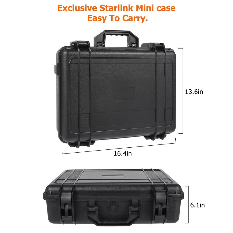 - Custom Fit for Starlink Mini KitThis durable case is designed to perfectly fit your Starlink Mini Dish, power supply, DC power cable, kickstand mount, pipe adapter, keeping everything organized and protected.