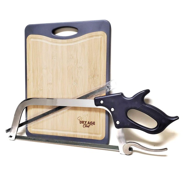 Dry Age Chef 16" Stainless Steel Butcher Hand Saw, Replacement Blade and Hybrid Cutting Board