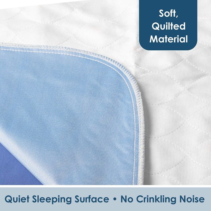 - SELF DRYING 4-LAYER CONSTRUCTION - Our mattress pads for incontinence feature a soft and comfortable quilted cotton/polyester top layer, a plush, soft polyester fiberfill layer, an ultra absorbent high density core layer, and a whisper-quiet waterproof vinyl layer, with a keep in place, non-slip barrier.