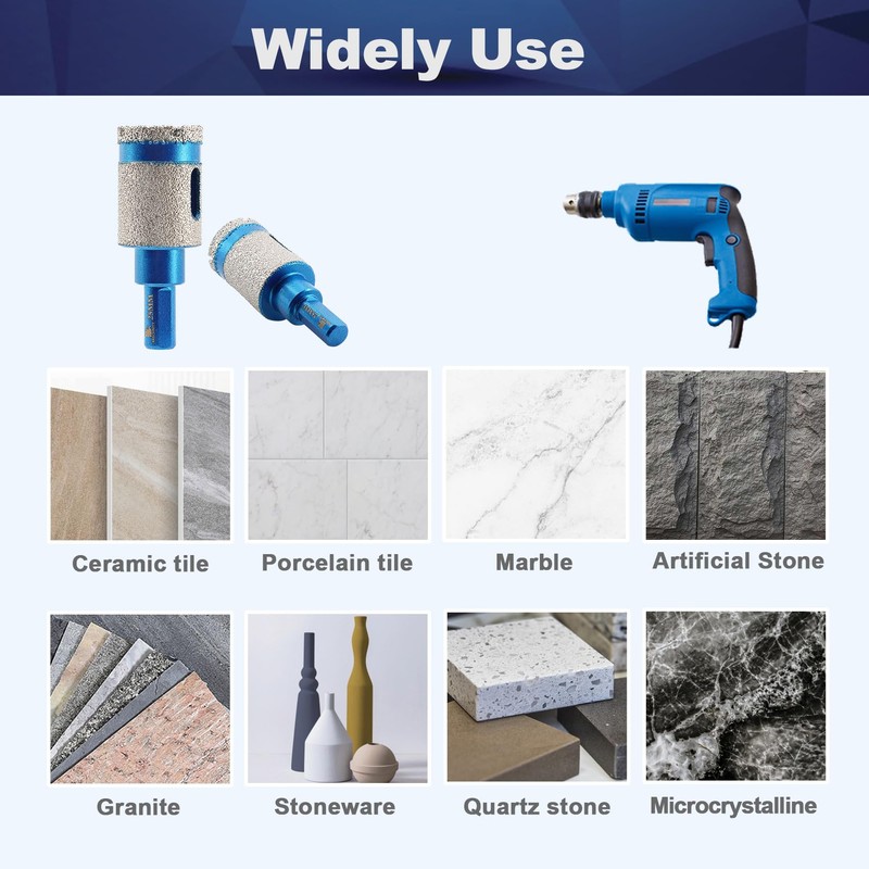 • Wide Applications --2 in 1 diamond drill bit and diamond finger milling bit are worked great for drilling+enlaging+shaping holes through hard porcelain tile, ceramics,bathroom tile,granite & marble, masonry Using water could prolong the lifetime