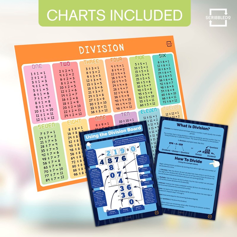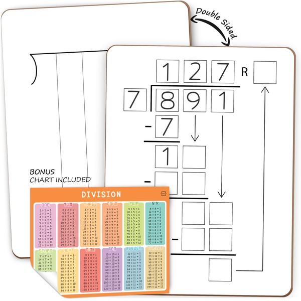 SCRIBBLEDO Dry Erase Division White Board 9x12Inch Small Division Chart Durable Portable Double Sided Math Manipulatives Practice Whiteboard for Kids Students Classroom and Home Long Division Lapboard