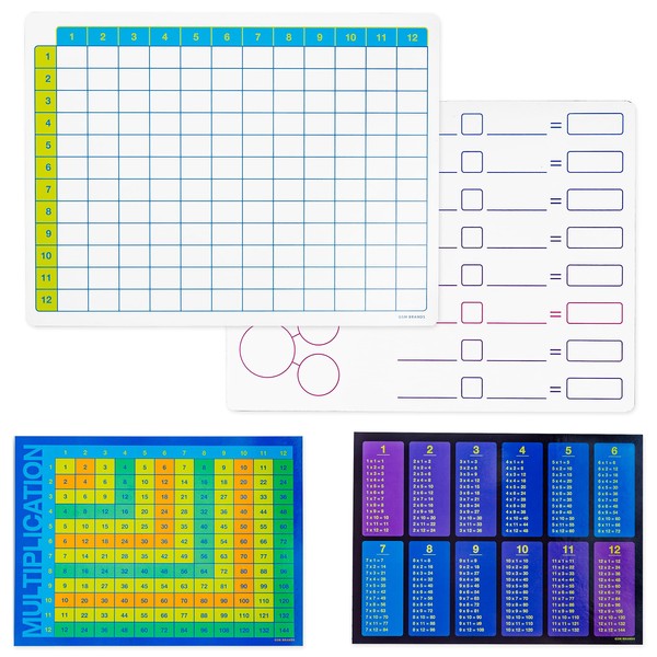 - A CLASSROOM MUST-HAVE: Our 9x12" double-sided dry-erase multiplication practice board kit is perfect for students learning multiplication. One side features a standard, blank multiplication chart (up to 12 x 12) and the other side a set of fact family circles and blank multiplication sentences.