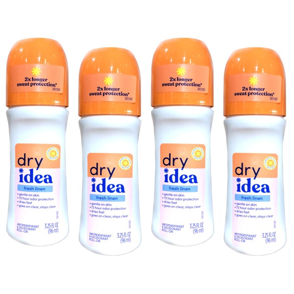 Dry Idea Antiperspirant Deodorant Roll-On, Fresh Linen, 3.25 fl oz (Pack of 4)