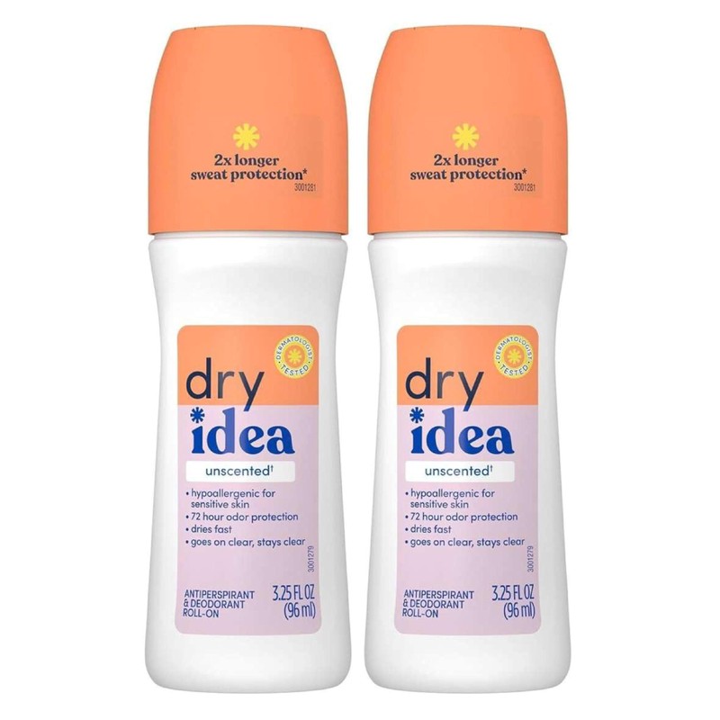Dry Idea Antiperspirant & Deodorant Roll On, Unscented 3.25 oz, 2 pk