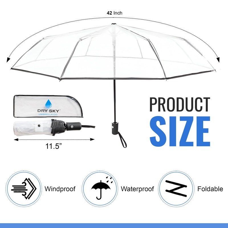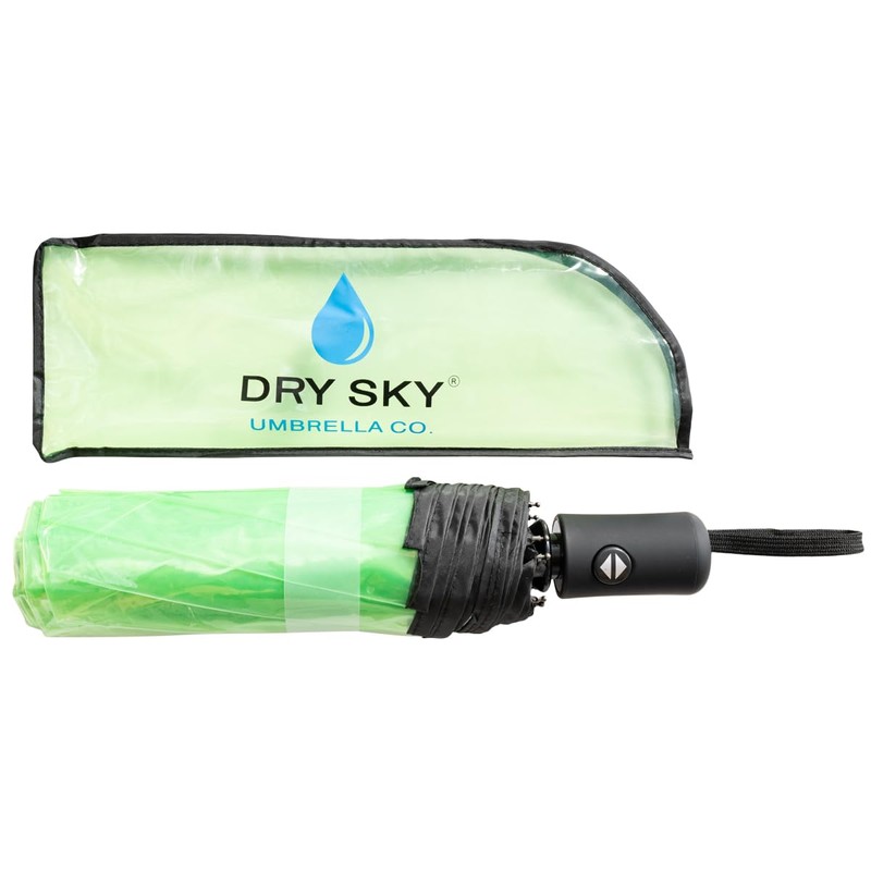 Dry Sky Umbrella Co. Clear, Windproof Travel Umbrella for Rain - One-Click Auto Open and Close, Durable & Compact Umbrella, Strong Fiberglass Frame, Waterproof Canopy - Backpack, Purse, Portable Umbrella for Travel (Green)