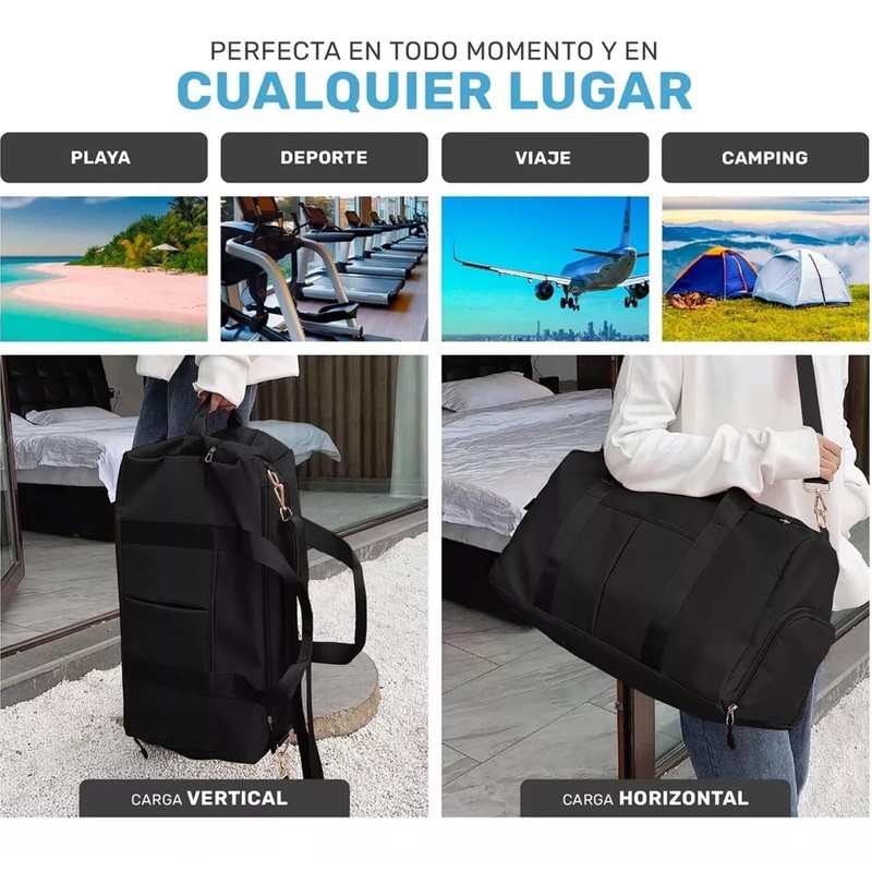 - 【Versátil】 Esta bolsa se puede usar tanto como bolso de mano, bolsa de transporte, con correa para el hombro como bandolera. El práctico lazo en la parte posterior se utiliza en las maletas o en el trolley. La bolsa de viaje viene con una correa de hombro desmontable que puede ajustarse en longitud para adaptarse a sus necesidades. Esta bolsa es la compañera de viaje perfecta y también es adecuada para una amplia gama de actividades al aire libre, natación, fitness, yoga, camping y pesca, etc.
