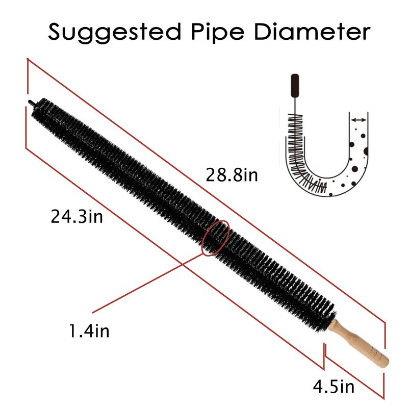 - Size Information: Our dryer vent cleaner kit is available in two sizes. The long-style dryer vent brush measures 30 inches overall, with 25.6-inch bristles. The short-style brush measures 27.5 inches overall, with 12.6-inch bristles.