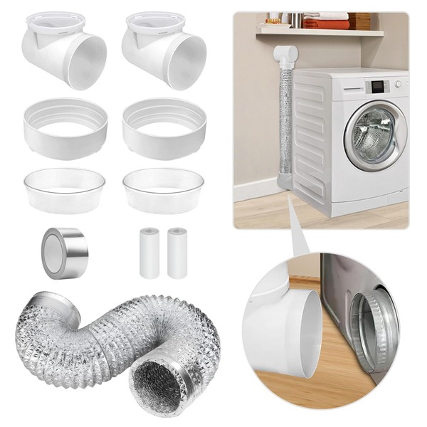 - 【Package Includ】90 degree dryer pipe connector *2, Exhaust pipe *1, connector transparent sealing ring *2, Dryer hose connector turn port *2, sealing tap *2, aluminum foil adhesive paper *1.Compatible with 4-inch dryer duct hose, suitable for most standard dryer models on the market.