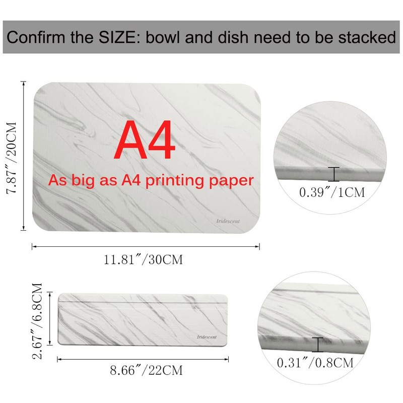 - [Wide use] It can efficiently and safely dry all tableware, keeping the sink area clean and tidy. It can also be placed under the drain rack to absorb moisture. The diatomite drain mat has the characteristics of non-slip and heat-resistant, it can also be used in the bathroom, placed next to the sink, dry cup, toothbrush and soap, etc.Warning: If colored beverages are spilled on drying mat, please wash them immediately to prevent stains! ! !
