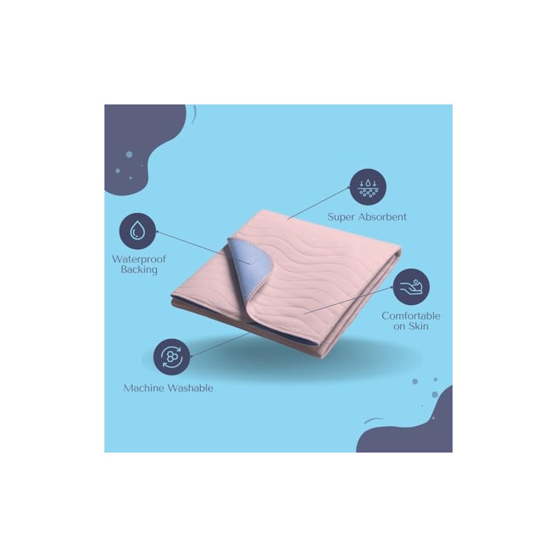 - LARGE WASHABLE BED PAD - Drylife Washable Bed Pads are a reliable and cost-effective solution for protecting mattresses and surfaces from fluids. With a generous size of 85cm x 90cm, these pink reusable bed pads feature a Polyester top surface and a highly absorbent soaker layer with a PVC fluid-proof barrier
