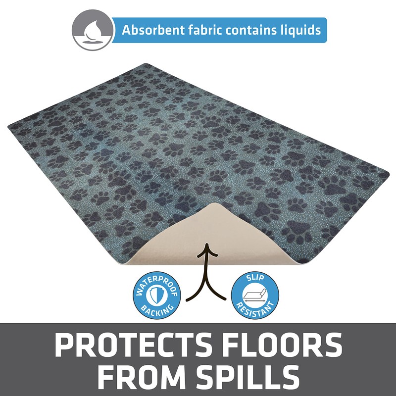 - PROTECTS FLOORS FROM SPILLS AND KEEPS THEM CLEAN AND DRY Drymate Pet Bowl Placemats help keep your pet's feeder clean and dry. Our mat protects surfaces by preventing water and food crumbs from leaking onto your floors. These placemats come in a variety of different styles and colors, allowing you to choose a design that suits your decor or your pet's personality.